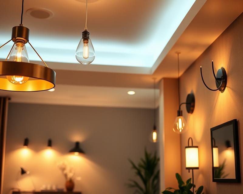 W salonie rekomenduje się zastosowanie różnorodnych źródeł światła, takich jak: